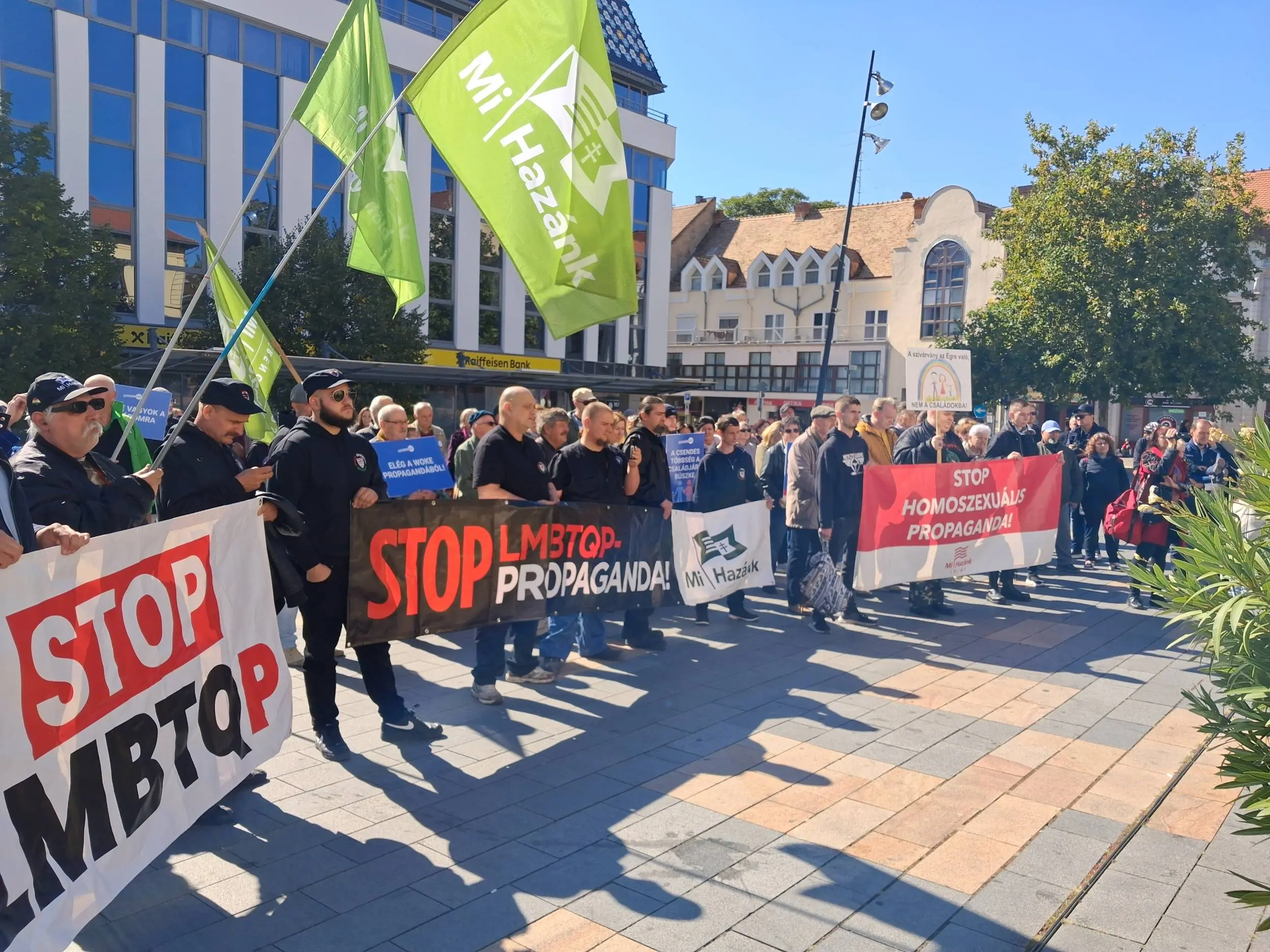 Közel sem mindenki ért azonban egyet a városban a rendezvénnyel: 11 órától a CitizenGo szervezésében több száz ellentüntető vonult fel a városban. Közülük Varga Tamás, helyi mi hazánkos önkormányzati képviselő beszámolója szerint nagyjából a fele résztvevő a pártjához köthető, de más nemzeti szervezetek is tisztességes létszámmal képviseltették magukat. A felvonulást imával zárták.