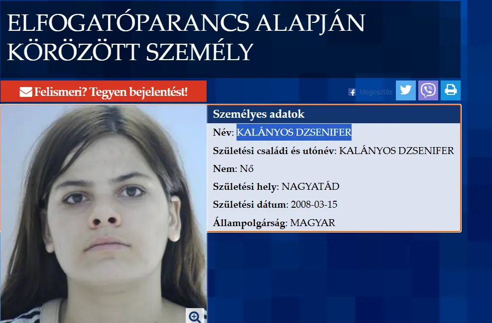 Frissítés: Időközben Kalányos fotója lekerült a rendőrség oldaláról, így a két Dzseniferből egy – feltehetőleg – meglett.
