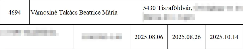 A NAV a weboldalán rendszeresen közzéteszi egy táblázatban azon foglalkoztatók adatait, akik esetében végleges bírósági vagy közigazgatási határozat állapította meg, hogy az alkalmazottuk munkaviszonyát nem jelentették be. A tiszás Vámosiné kapcsolódó adatsora a következőképpen néz ki:
