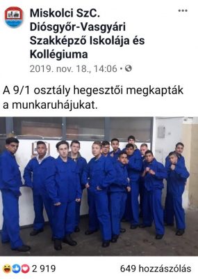 Nem a fiatalkorúak börtönében és nem is egy boxedzés előtt készült ez a kép. Saját Facebook oldalán osztotta meg egy miskolci szakképző iskola, azzal a kísérőszöveggel, hogy "A Miskolci SzC Diósgyőr-Vasgyári Szakképző Iskola 9/1 osztály hegesztői megkapták a munkaruhájukat."