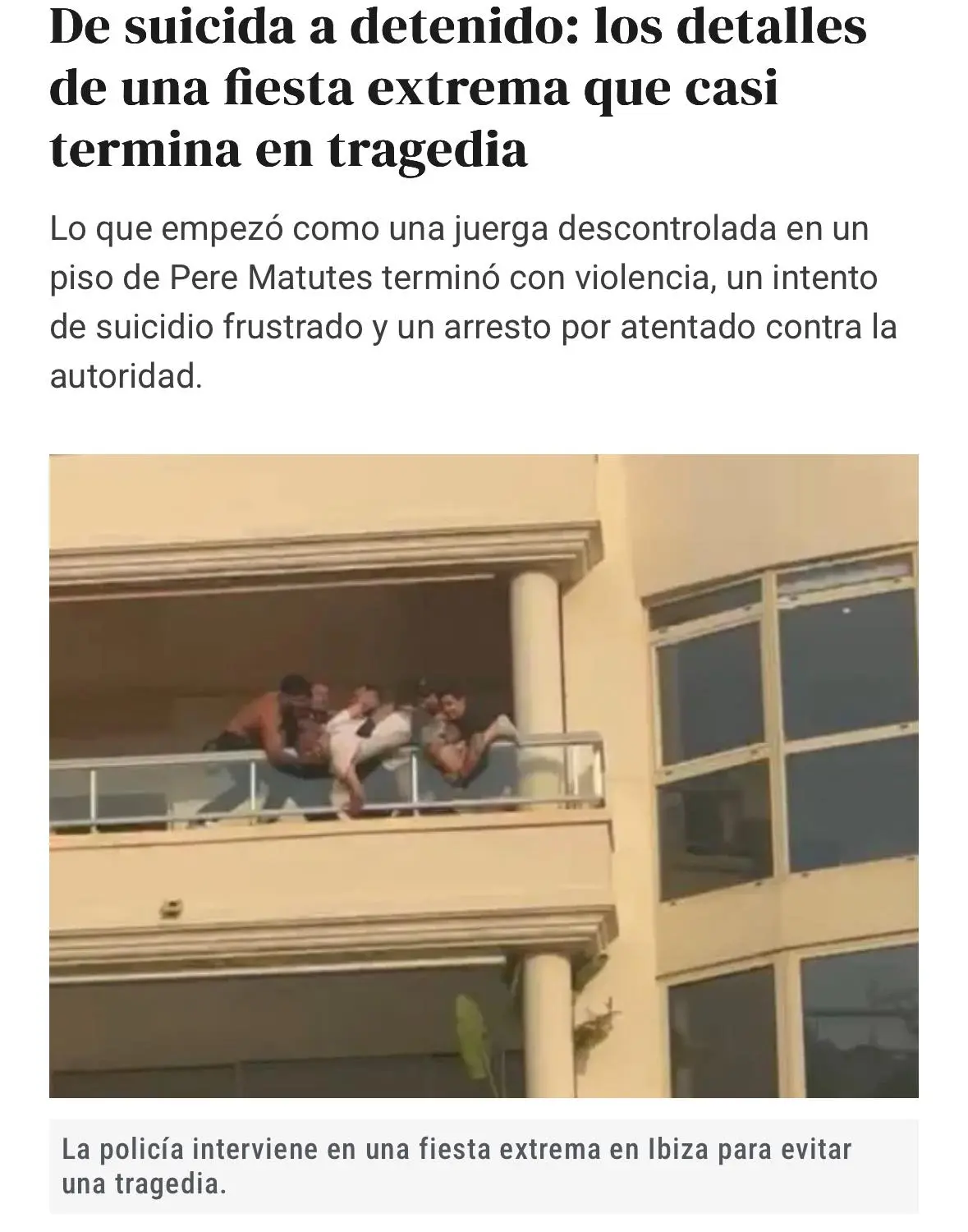 - Július 7-én egy skót turista, a 26 éves Evan Thomson zuhant ki a hatodik emeleti erkélyről. Evan a barátaival ment bulizni Ibizára. Halálának körülményei máig tisztázatlanok. A szálloda tragikus balesetként nyilatkozott a történtekről, és bejelentette, hogy felfüggeszti programjait. A rendőrségi eljárás még folyamatban van, de a hotel persze nem sokáig tartott részlegesen zárva.