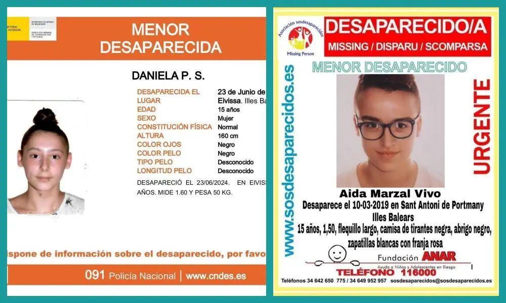 - Daniela P.S. 15 éves, 2024. június 23‑ára datálódik az eltűnése ugyancsak Ibizán, Santa Eularia (Santa Eularia des Riu) területén. A lány állítólag egy ifjúsági gondozóintézetben volt elhelyezve, korábban többször is elszökött az intézetből, de eddig mindig rövid idő után előkerült. A hivatalos keresést és riasztást végül lezárták – azaz már nem szerepel aktív eltűntként.