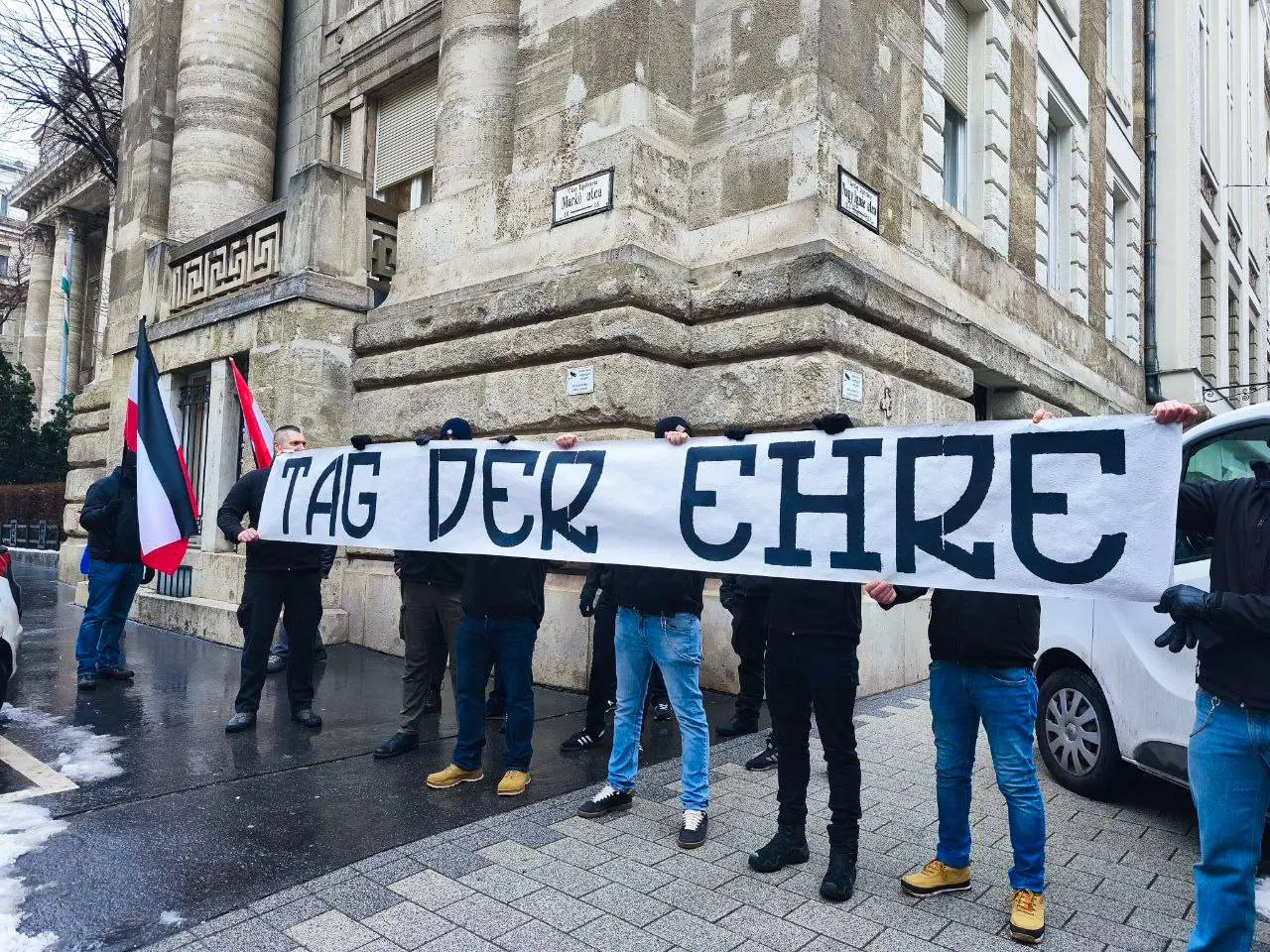 A Hatvannégy Vármegye Ifjúsági Mozgalom a megszokott molinóval jelent meg, a Légió Hungária pedig egy „Tag der Ehre”, vagyis Becsület Napja feliratú kiírást emelt fel a mintegy húsz antifasisztával szemben.