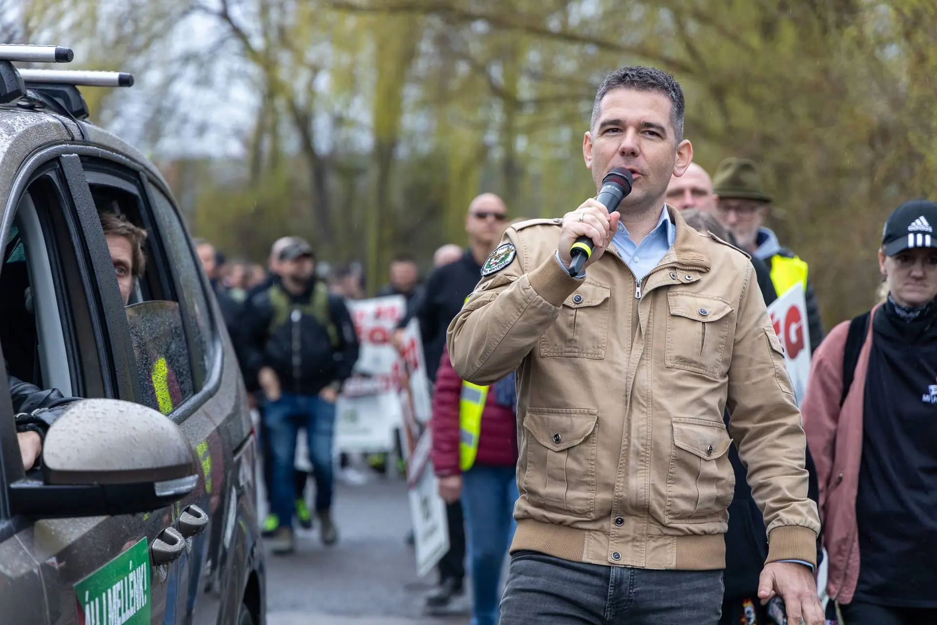 On March 14, the party's bus pulled into Kálló at 9 a.m. on a workday. Three people were on board. Zoltán Kemenár, a Pest County Mi Hazánk assembly member, stepped out first. Mi Hazánk vice chairman Dávid Dócs arrived shortly afterward and found sixty to seventy people already gathered.