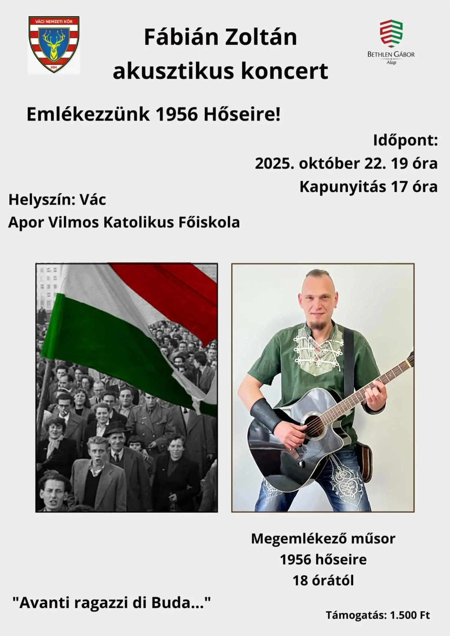 Fábián Zoltán akusztikus koncertjével tiszteleg a Váci Nemzeti Kör 1956 emléke előtt