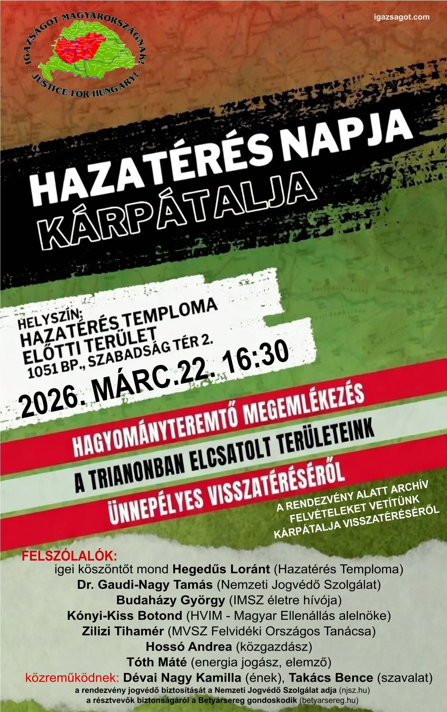 A 2025 november 2-án hagyományteremtő céllal megrendezett első Hazatérés Napja folytatásaként az Igazságot Magyarországnak Szövetség 2026. március 22-én megrendezi a második Hazatérés Napja rendezvényt, amelyen Kárpátalja északi részének 1939 tavaszi visszacsatolására emlékeznek (a déli terület már az első bécsi döntéssel visszakerült).