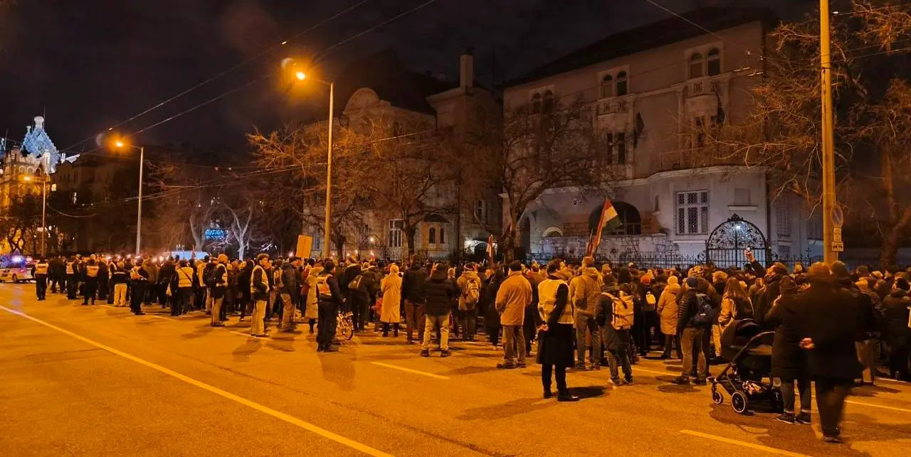 Tüntetés a szlovák nagykövetség előtt 2026. január harmadikán | Fotó: Maczi István/Magyar Jelen
