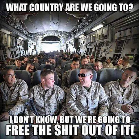 A rájuk annyira jellemző biblikus farizeuskodással az amerikaiak rendszerint azzal az ürüggyel támadnak meg más országokat, hogy úgymond megakadályozzák valami még rosszabb, nevezetesen egy népirtás bekövetkeztét, holott az általuk tanúsított féktelen militarizmus sokkal inkább kiváltja, semmint meggátolja azt. Az ószövetségi elmedrog nemzedékeken át tartó krónikus túladagolása, a jingóista Lügenpresse (sovén és manipulatív sajtó – a szerk.) és a hollywoodi illúzióipar egy végletekig militarizált tömeglélektani közeggé formálta az amerikai társadalmat, aminek eredményeként a világ katonai kiadásainak mintegy 40 százalékáért az USA felelős, vagyis egyedül többet költ fegyverkezésre és agresszív erőfitogtatásra – így a világ több mint 100 országában fenntartott 700–1000 katonai támaszpontjának fenntartására –, mint az utána következő kilenc ország együttesen.