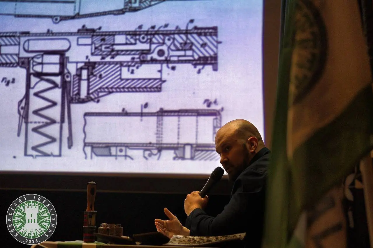 „Az első ilyen fegyver a Király Pál által fejlesztett, korszakában egyedülálló 39M Király-géppisztoly volt. Az érdekfeszítő előadásban részletesen ismertette a fegyver működési elvét és különleges tulajdonságai. Ezt követően a magyar fejlesztésű gránátok kerültek sorra a prezentációban. Ezek közül a Vécsey-gránátról beszélt hosszabban az előadó, kiemelve, hogy ez a hadieszköz kisebb módosításokkal 2009-ig használatban volt a Magyar Honvédségnél. Részletesen bemutatta a 44M buzogányvetőt, melyet a köznyelvben Szálasi-röppentyűként ismernek a téma iránt érdeklődők. Gál Attila kiemelte, hogy ez az egyszerű, de rendkívül hatékony páncéltörő eszköz a legvastagabb, akár 300 mm-es homlokpáncélzatú szovjet harckocsit is képes volt ártalmatlanítani. A közönség számára is kiderült a magas szakmai színvonalú, ugyanakkor érdekes előadás végére, hogy a magyar hadmérnökök sokszor korukat megelőző megoldásokra és teljesítményre voltak képesek, de eszközeik erősen korlátozott mennyisége okán nem tudták érdemben befolyásolni a harcokat” – tették hozzá.