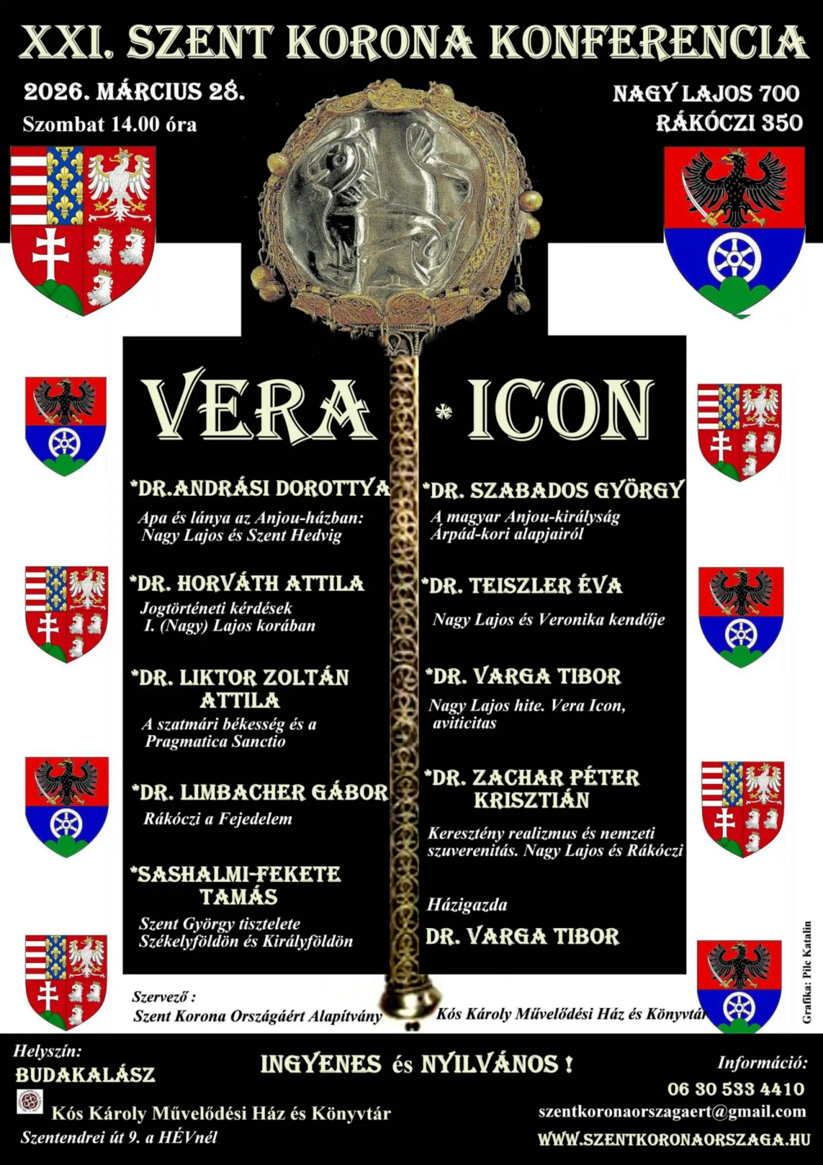 Az idén hétszáz éve született Nagy Lajos királyunk, és háromszázötven éve született vezérlő fejedelmünk, II. Rákóczi Ferenc alakját és történelmi nagyságát felelevenítő, tudományos konferencián vehetnek részt az érdeklődők március 28-án 14 órai kezdettel a XXI. Szent Korona-konferenciasorozat keretében. Az ingyenes és nyilvános rendezvény helyszíne Budakalász, Kós Károly Művelődési Ház és Könyvtár.