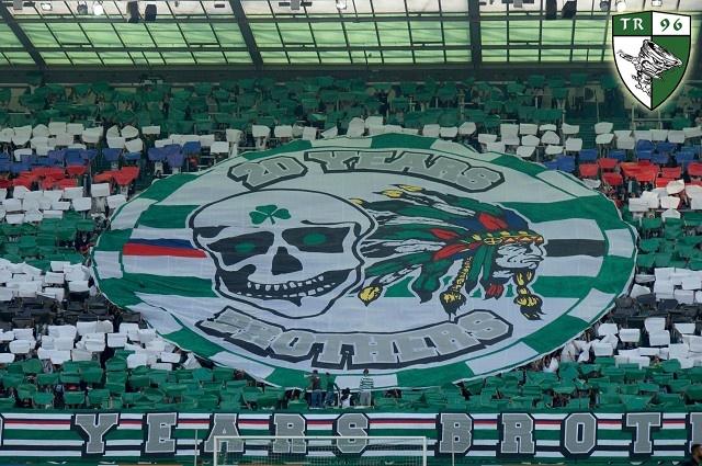 A ferencvárosiak pedig a bécsi Rapid ultráival fennálló barátságukat ünnepelték meg egy látványos koreográfia keretében: