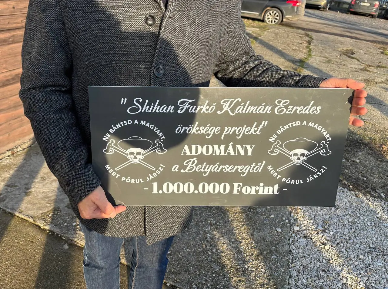 Tyirityán Zsolt, a Betyársereg vezetője többedmagával egymillió forintot adott át a Furkó Kálmán által alakított karateklub, a Banzai Kyokushin Karate Kai egyik vezetőjének, Sensei dr. Bíró Ferencnek.