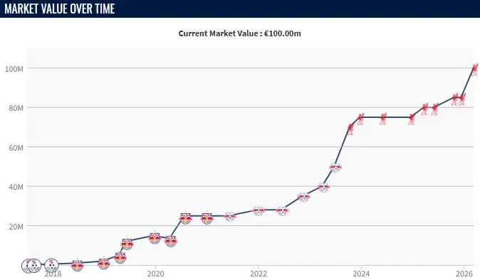 Jelenleg mindössze 20 olyan futballista van, akiknek piaci értéke legalább 100 millió euró, így Szoboszlai egy olyan elit körbe került be, amelybe kizárólag a sport legnagyobb világsztárjai tartoznak.