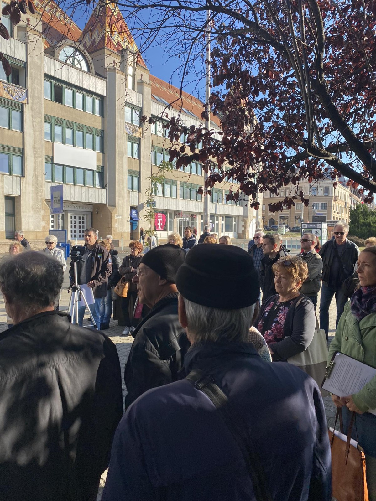 Miközben a bíróság meghozta határozatát, az ítélőtábla előtt mintegy hetvenen demonstráltak az ellen, amit Covid-diktatúrának neveztek, felszólalt Szakás Árpád is.