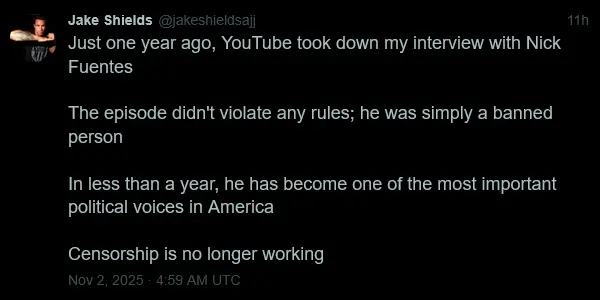 Az elemzők megjegyezték, hogy Carlson puhányabb hozzáállása Fuentes felé azt jelenti, hogy a jobboldalon csökken a radikális, zsidó- és Izrael-kritikus nézetekkel szembeni ellenállás. Ez a változás jelentős, különösen azért, mert Fuentes nemrégiben más konzervatív platformokon is megjelent, valamint podcastekben szerepelt Candace Owensszel, Dinesh D’Souzával és Glenn Greenwalddal. Az a tény, hogy Fuentes ezen a podcastturnén van, és hogy ez az interjú megtörtént, azt mutatja, hogy zöld utat kapott ahhoz, hogy kiemelkedő politikai kommentátorrá váljon.