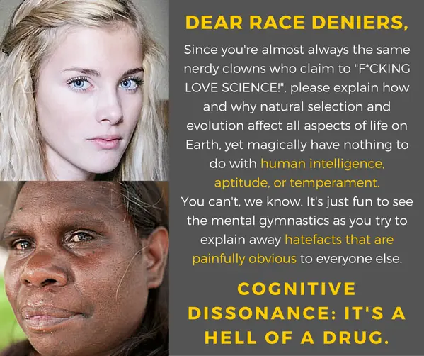 A rasszializmus – amely pusztán konstatálja az emberfajok létezését, de a rasszizmustól eltérően nem állít fel köztük hierarchiát – nem egy hiedelem vagy egy ideológia. A tudománynak kell eldöntenie, hogy az a nevetséges állítás, miszerint „a bőrszín kivételével a fajok azonosak”, megfelel-e a valóságnak. Márpedig a tudomány már régóta kimondta, hogy a bőrszínen túl a fajok közötti különbségek a csontváz felépítése, a koponya alakja, az agy térfogata, a hormonális szint, az intellektuális képességek (IQ-szint) stb. tekintetében is nyilvánvalóak. Tudományosan tehát eldőlt a vita. Azokat, akik tagadják ezt a realitást, ugyanúgy kellene kezelni, mint az antievolucionistákat. Valójában a faji egalitarizmus csak a kreacionizmussal kompatibilis, mivel az evolúciós elmélet szerint a különböző környezetben kifejlődött csoportok szükségképpen különböző fejlettségi szintre jutnak. A faji egyenlőség egyfajta misztikus hiedelem, amely udvari ideológusok lobotomizált agyából pattant ki politikai megrendelésre. Kompetens szakértők szakmai állásfoglalásai helyett dilettáns politikai komisszárok ex cathedra kinyilatkoztatásai uralják a közbeszédet, akik mind átestek a humán tudományos karokon gyakorolt szisztematikus indoktrináción, egyfajta kötelező beavatási szertartásként mindenki számára, aki napjaink átpolitizált tudományos közegében szakmai karrierre vágyik.