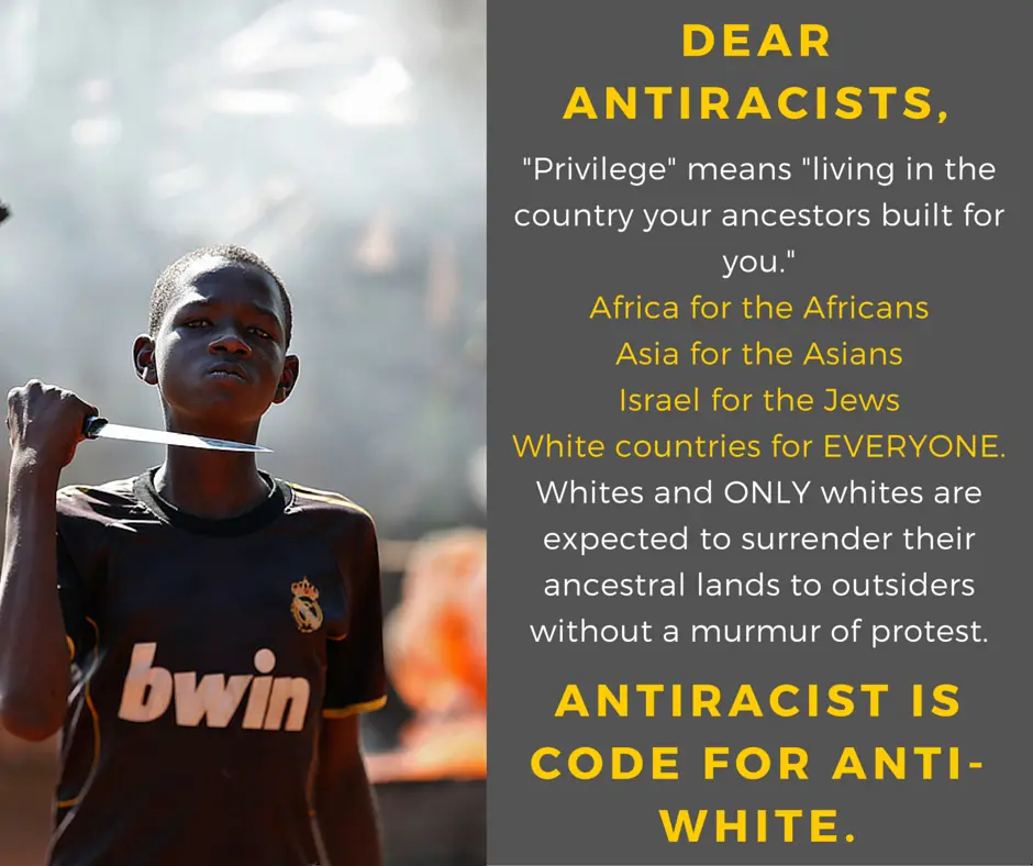 Sok liberális és balos kimondottan élvezi a fehér faj folyamatban lévő megsemmisítését. Ezek a frankfurti iskola kulturbolsevista ideológiája által agymosott etnomazochista fehér zombik gyűlölik a „Nyugatot” (itt most a fehér civilizáció szinonimájaként értve) és a fehéreket, különösen a fehér férfiakat, mert ez utóbbiakat hibáztatják a világ összes problémájáért. Azt képzelik, hogy ha majd a fehéreket „kiküszöbölik” vagy legalábbis kisebbségi státuszba kényszerítik, akkor a világot végre újjáépíthetik a marxista utópia alapján, örök békét és édeni harmóniát teremtve. Ha a fehér genocídium csak „egy fehér nacionalista összeesküvés-elmélet”, ahogyan azt a Wikipédia definícióját szajkózó fehérellenes balosok állítják, akkor miért igazolják azzal, hogy „megérdemeljük” amiatt, amit az őseink tettek? Nem lehet igazolni valamit, ami állítólag meg sem történik.