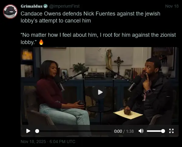 „Az Egyesült Államokban az antiszemitizmus nem csupán növekszik, hanem áttétet képez. (…) A legmérgezőbb alakok között van Nick Fuentes és Candace Owens, akik ma Amerika két legbefolyásosabb és legellenségesebb zsidóellenes hangja. És van egy kényelmetlen és tagadhatatlan tény, amelyre a Vatikánnak reagálnia kell: mindketten buzgó katolikusok, akik rendszeresen hivatkoznak hitükre, miközben gyűlöletet és haragot szórnak. (…) A Vatikán valójában megfogadta, hogy mindenhol felszámolja az antiszemitizmust, különösen a saját nyáján belül. De ez az ígéret most próbára van téve. Fuentes és Owens közvetlen és veszélyes kihívást jelent a II. Vatikáni Zsinatra. Aláássák a katolikusok és a zsidók közötti megbékélésre irányuló, évtizedek óta tartó erőfeszítéseket. És fiatal katolikusokat zsákmányolnak, olyan víziót kínálva nekik, amely a vallási identitást nyílt bigottsággal ötvözi. És minél tovább hallgat a Vatikán, annál jobban terjed a mérgük. (…) XIV. Leó pápának nem kell részt vennie a kultúrháborúkban vagy az amerikai politikai vitákban. De egyértelműen és nyilvánosan – név szerint – ki kell jelentenie, hogy Nick Fuentes és Candace Owens nem képviseli a katolikus tanításokat és értékeket, és hogy az antiszemitizmusuk bűnös és veszélyes. (…) Fuentes és Owens megpróbálja visszahúzni a Vatikánt abba az árnyékba, amelyből évtizedek óta próbál kilépni. Nem szabad hagyni, hogy sikerrel járjanak. A katolikus egyház most az igazság pillanatával szembesül. A világ figyel. Az amerikai zsidók aggódnak. És amerikai katolikusok milliói tisztázásra várnak.”