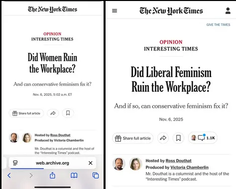Átlagosan eltérő gondolkodásmódjuk és viselkedésük miatt a nők a modern társadalmi változások fő mozgatórugói, beleértve a „wokeness” minden aspektusát, a szexuális perverziókat, a szólásszabadság és a prostitúció korlátozását, a haszontalan „reintegrációs” politikákat, az ellenőrizetlen tömeges bevándorlást, a fehérellenes rasszizmust stb. Az eltörléskultúra egyszerűen az, amit a nők tesznek, amikor elég sokan vannak egy adott szervezetben vagy területen. Minden, ami „wokeness”, egyszerűen a demográfiai feminizáció mellékjelensége, női viselkedésminták megnyilvánulása, amelyeket olyan intézményekben alkalmaznak, ahol a nők száma a közelmúltig csekély volt. Minden, ami wokeness, a női mentalitás előtérbe kerülése a férfi mentalitás rovására: az érzelmesség az ésszerűség, a kollektíva az individuum, az összetartás a verseny helyett. Egy amerikai felmérés szerint a férfiak 71 százaléka a szólásszabadság védelmét, vagyis a vélemények ütköztetését részesíti előnyben, míg a nők 59 százaléka az összetartó társadalom megőrzését, vagyis a véleményeltérések elfojtását.
