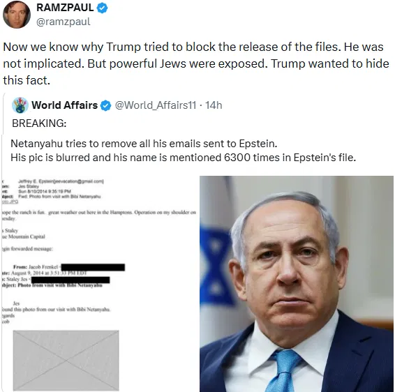 Ha az eddig nyilvánosságra hozott fájlokban természetesen nincs is döntő bizonyíték arra, hogy Trump szexuális bűncselekményeket követett el, arra viszont vannak bizonyítékok, hogy öt évvel azután is Epsteinnel bulizott, hogy Epsteint kiskorú lányok szexuális kereskedelmében találták bűnösnek, három évvel azután, hogy felvették a szexuális bűnözők nyilvántartásába, és nyolc évvel azután, hogy feleségül vette Melaniát. A füstölgő puskacső az, hogy az akták szereplői közül senkit sem vádolnak semmilyen bűncselekménnyel, és hogy a hatóságok nem követelik Les Wexner és Leon Black zsidó milliárdosoktól, hogy magyarázzák meg, miért adtak ennek a fickónak több százmillió dollárt ajándékba. Trump legbelső körében azok, akik legerőteljesebben támogatják az „Izrael az első” külpolitikát, ugyanazok, akik a legmélyebben érintettek az Epstein-botrányban – Alan Dershowitz sztárügyvéd, Epstein volt védője és „masszázskliense”, Howard Lutnick, az USA kereskedelmi minisztere, Trumphoz hasonlóan Epstein régi cimborája és áttételesen Jared Kushner, Trump veje, aki közel áll mind Dershowitzhoz, mind Lutnickhoz.