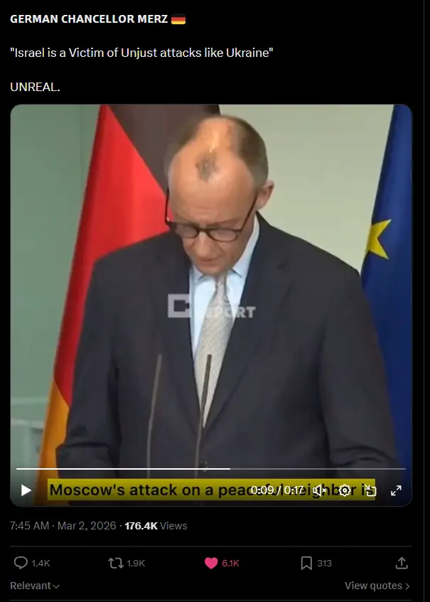 Merz német kancellár: „Izrael ugyanúgy egy igazságtalan háború áldozata, mint Ukrajna.”