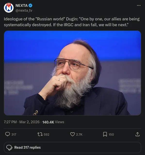 Alekszandr Dugin, az „orosz világ” ideológusa: „Egyenként szisztematikusan megsemmisítik a szövetségeseinket. Ha az Iráni Forradalmi Gárda és Irán elesik, mi leszünk a következő.”