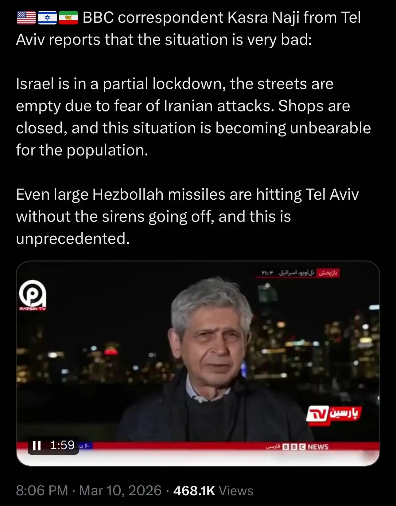- Israel ‘up to its neck, unprepared’ for two-front war against Iran, Hezbollah: Report, thecradle.co, 2026.03.09.
