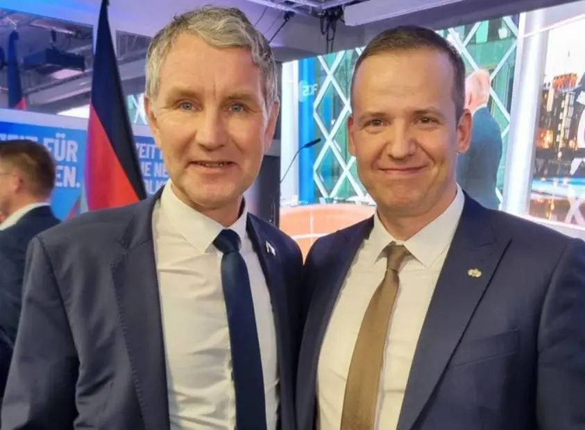 (Forrás: Martin Sellner és Björn Höcke X-profilja, illetve Démocratie Patricipative/bfmtv.life)