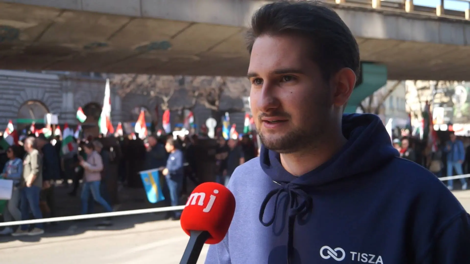 Március 15-én kilátogattunk a Fidesz Békemenetére, ahonnan átsétáltunk a Tisza Nemzeti menetére. A két politikai rendezvényen egyaránt azok résztvevőit kérdeztük szimbolikus vagy éppen aktuális ügyekről. Sőt, egy Tisza-pulcsis fiatalembert a Békemeneten sikerült elkapnunk, így egyesítve a két felvonulást.