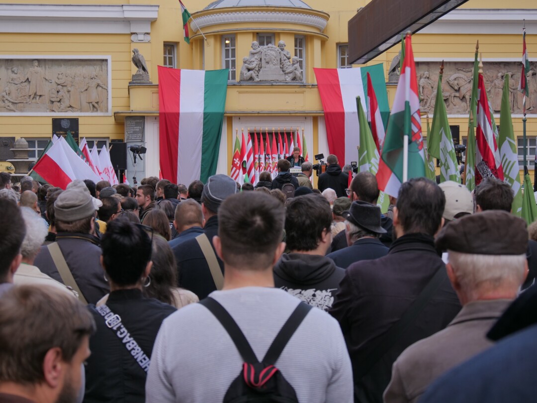 15:40: Pongrátz András után Vékony Csongor, a Mi Hazánk budapesti elnöke mond beszédet. A fővárosi vezető Pongrátz András mellett külön köszöntötte a rendezvényen jelen lévő bolgár és lengyel bajtársakat.
